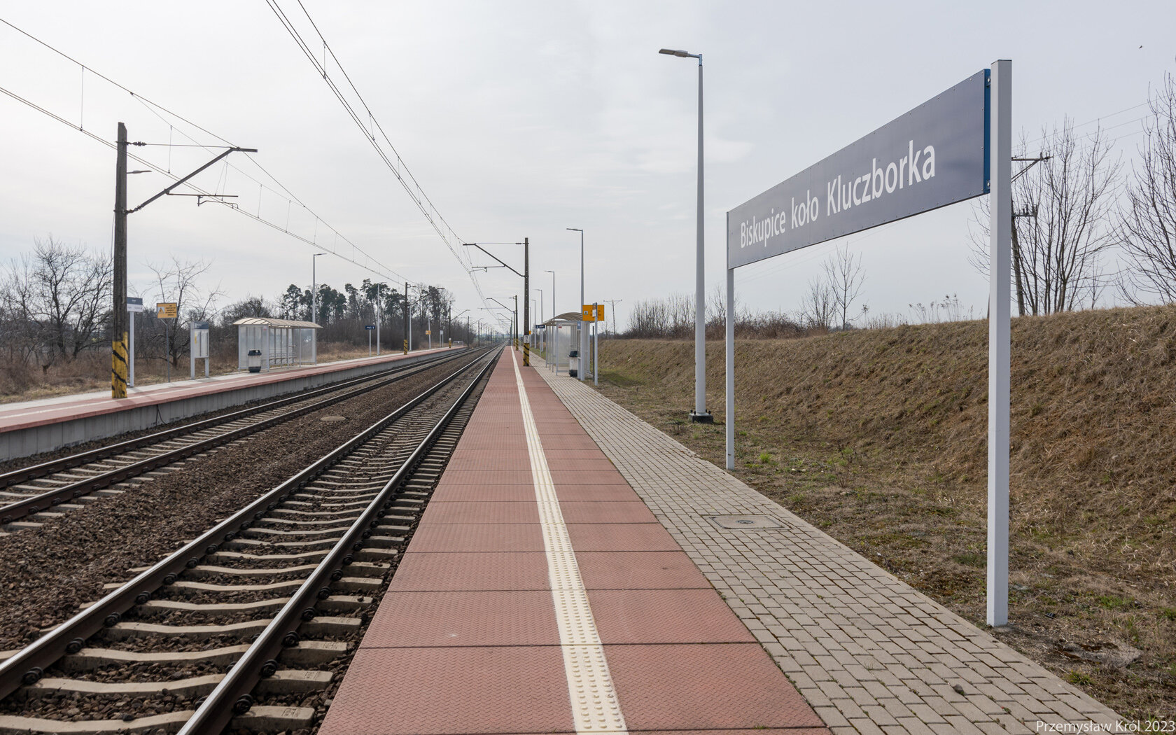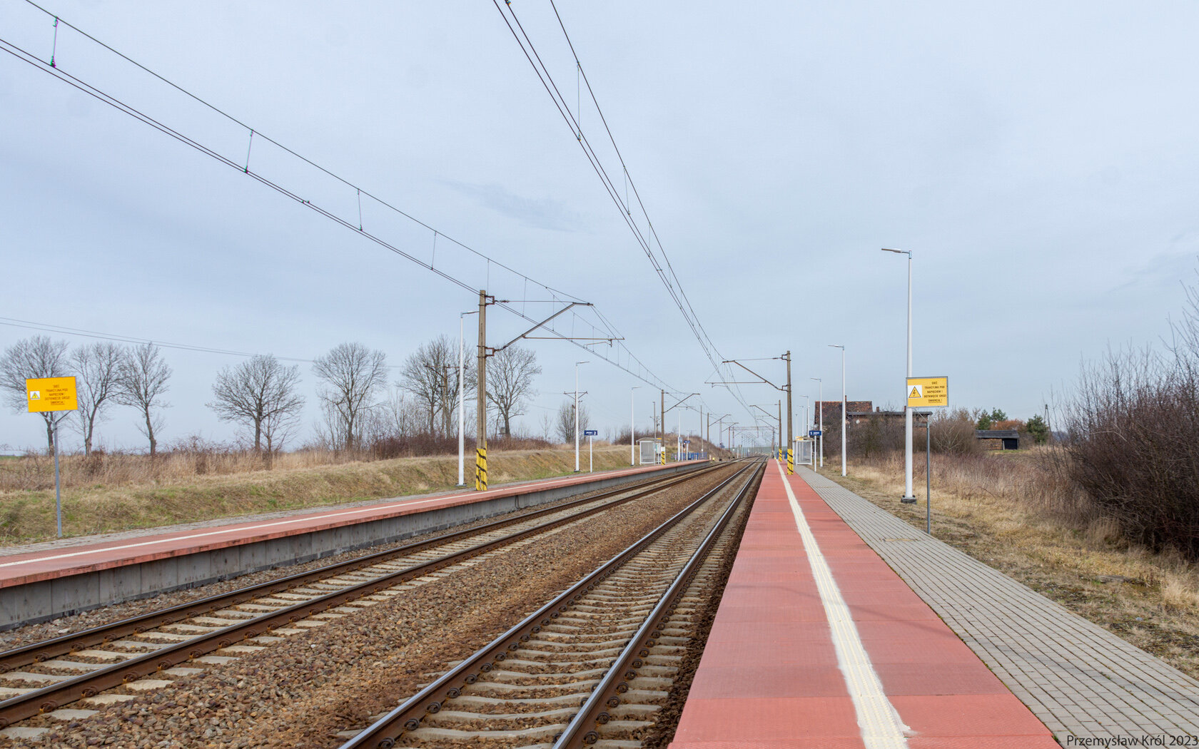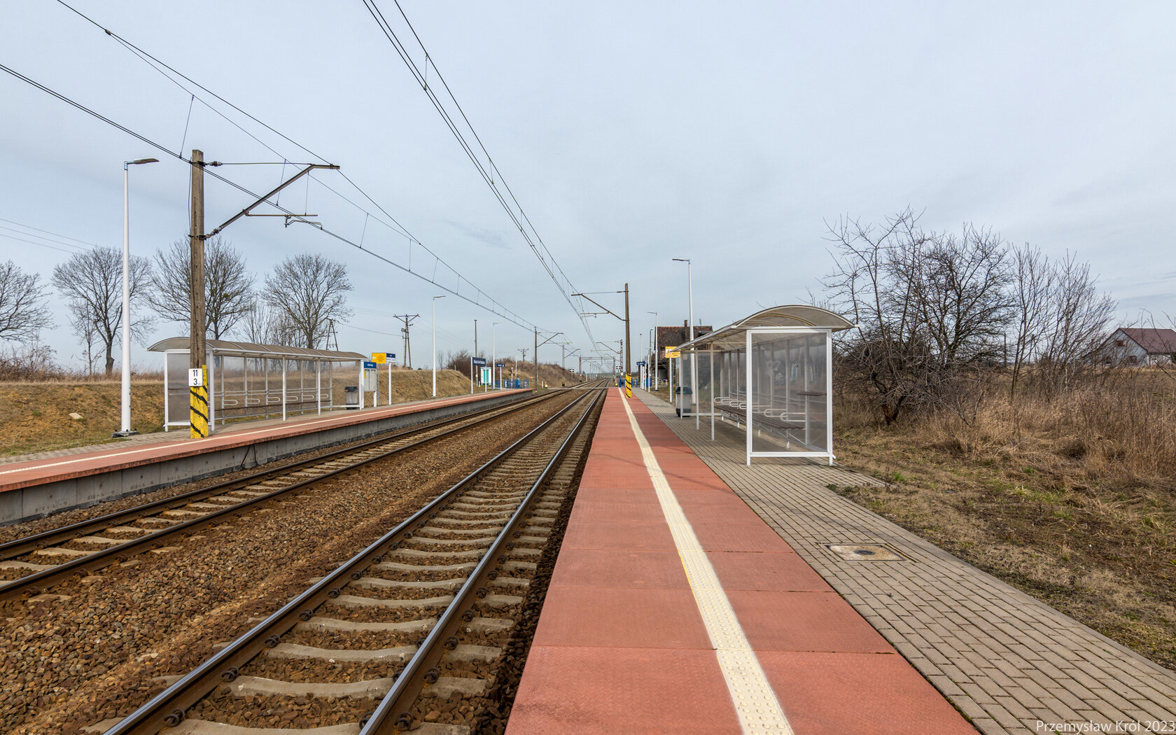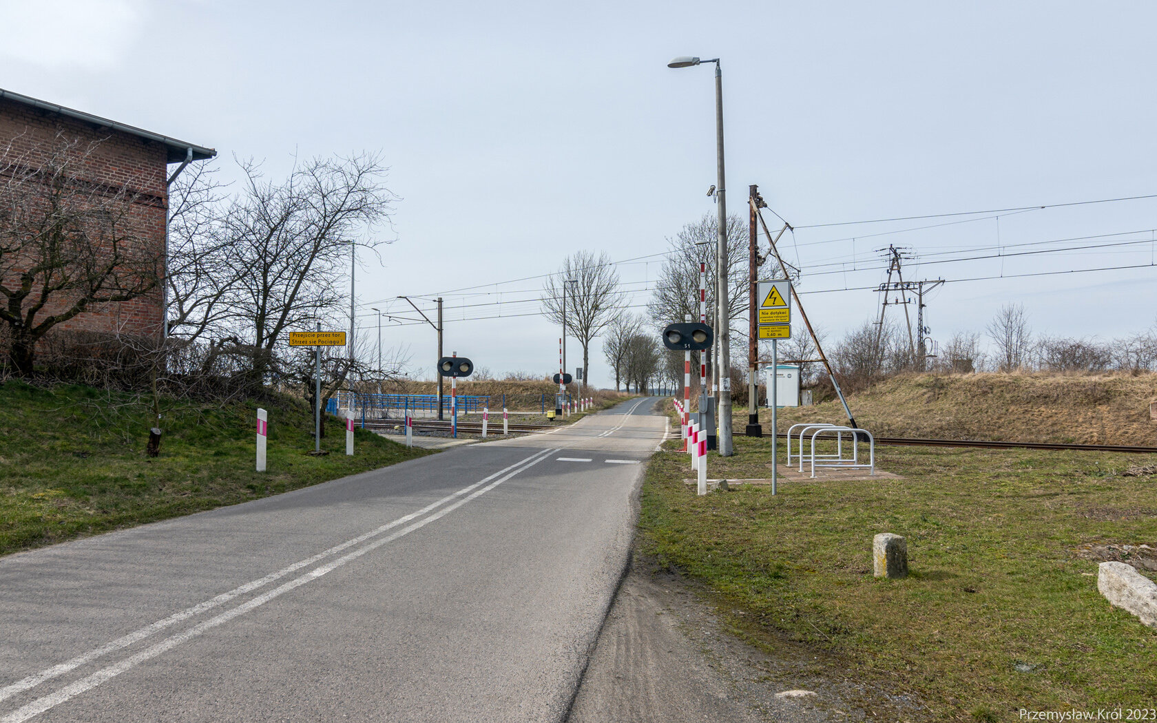 Przejazd drogowy, przy którym znajduje się przystanek osobowy.