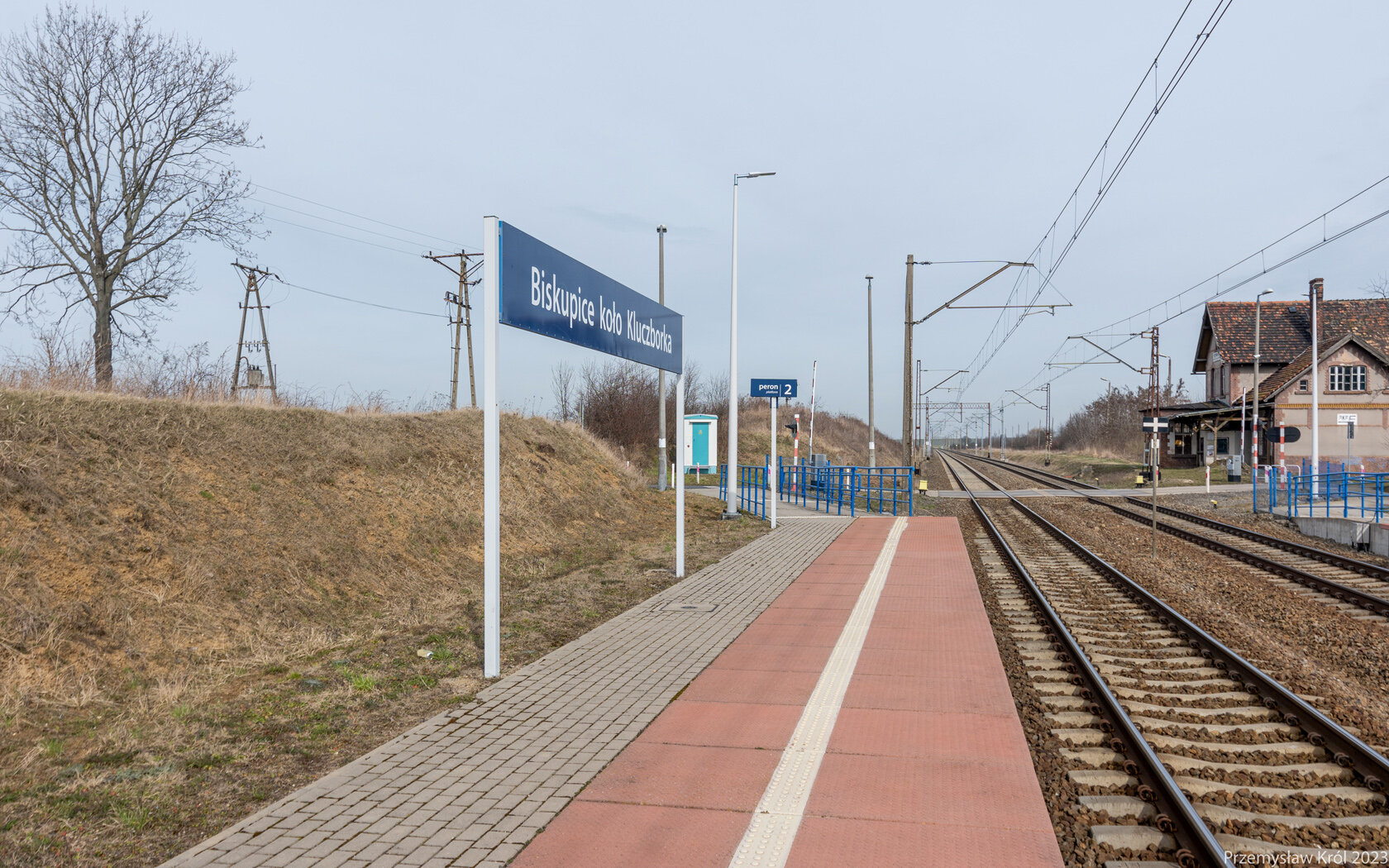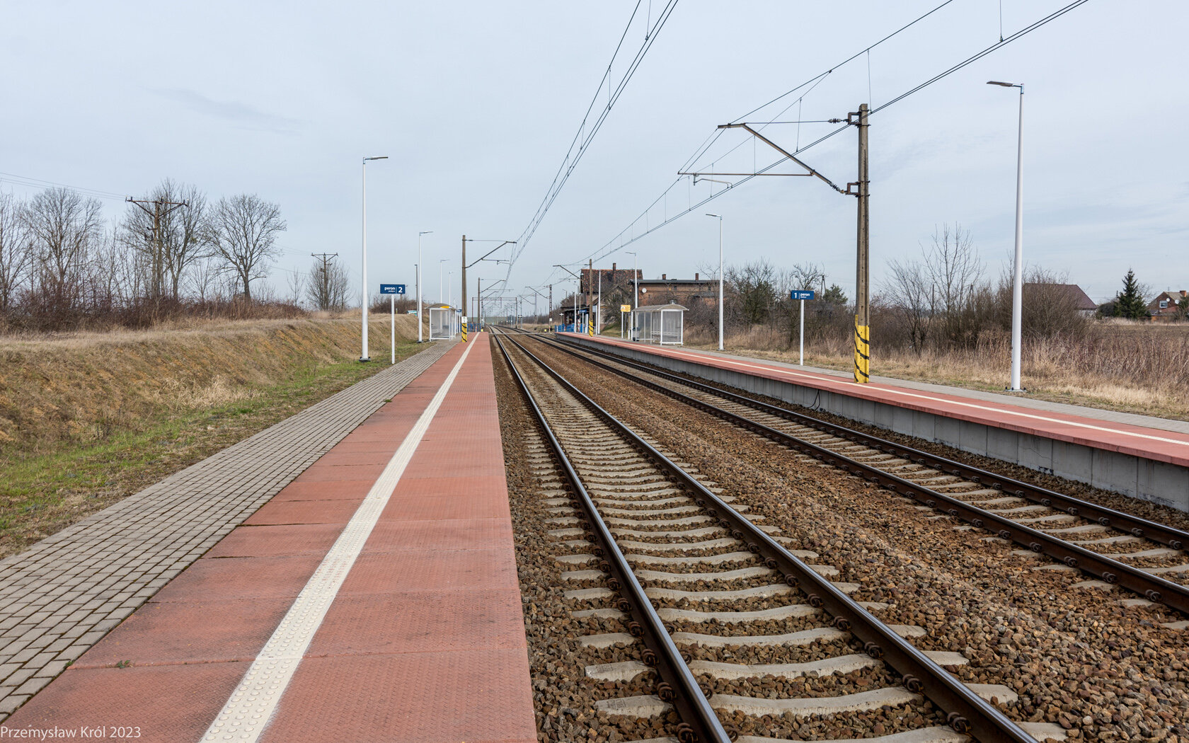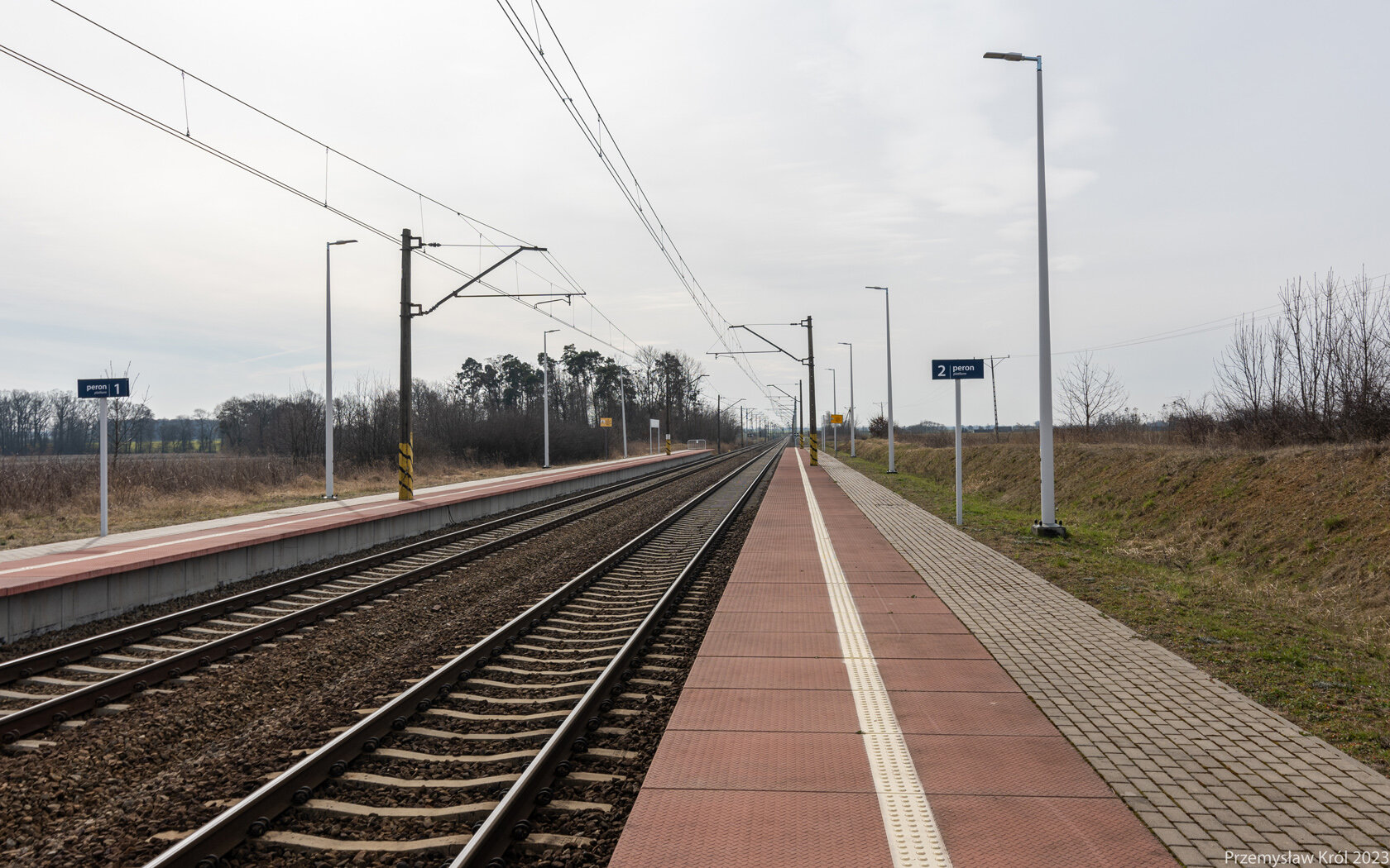 Peron 1 i po prawo 2. na stacji, a w zasadzie od dawna przystanku osobowym na szlaku Kluczbork - Ostrów Wielkopolski.