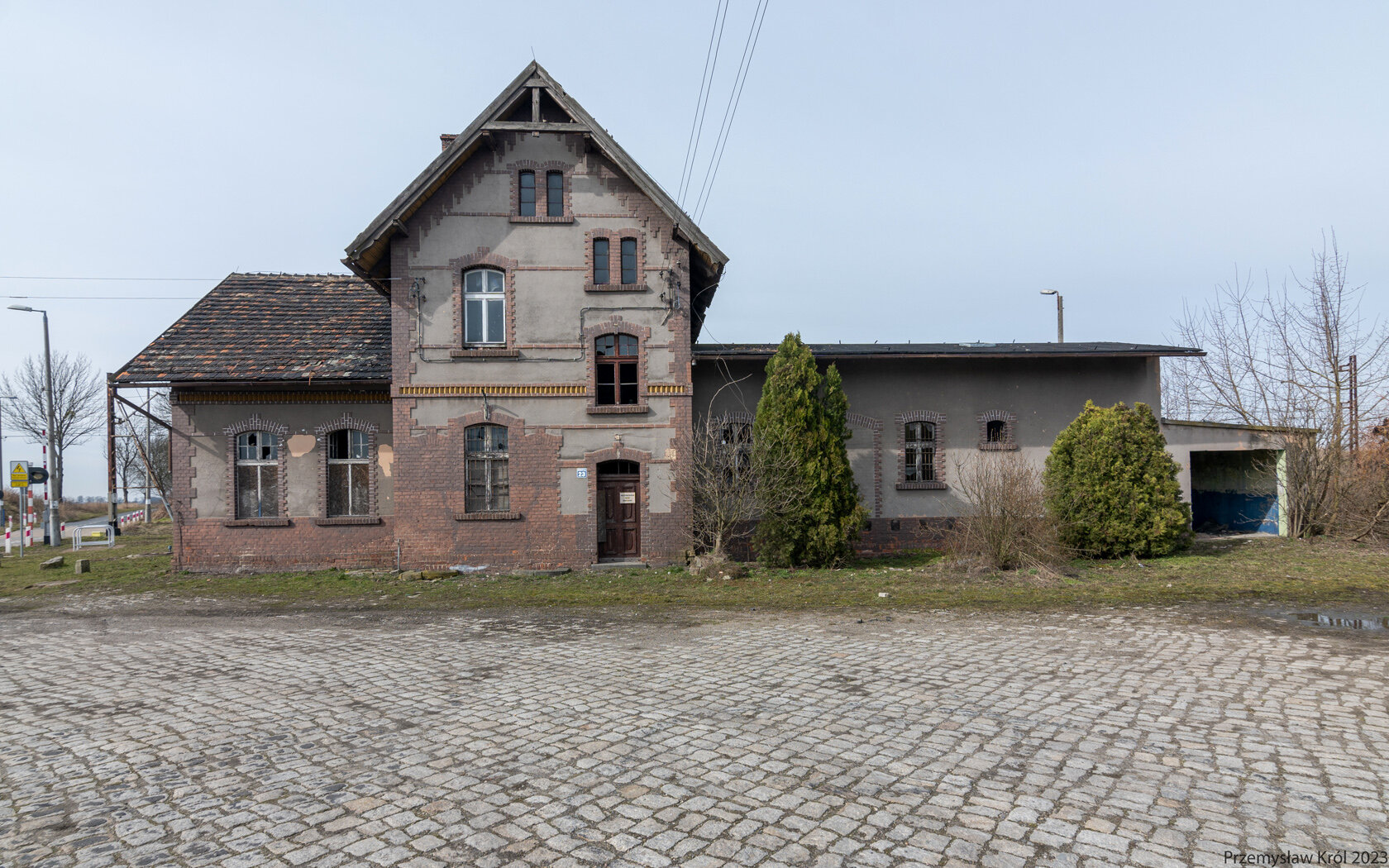 Ujęcie na budynek dawnego dworca kolejowego od strony torów.