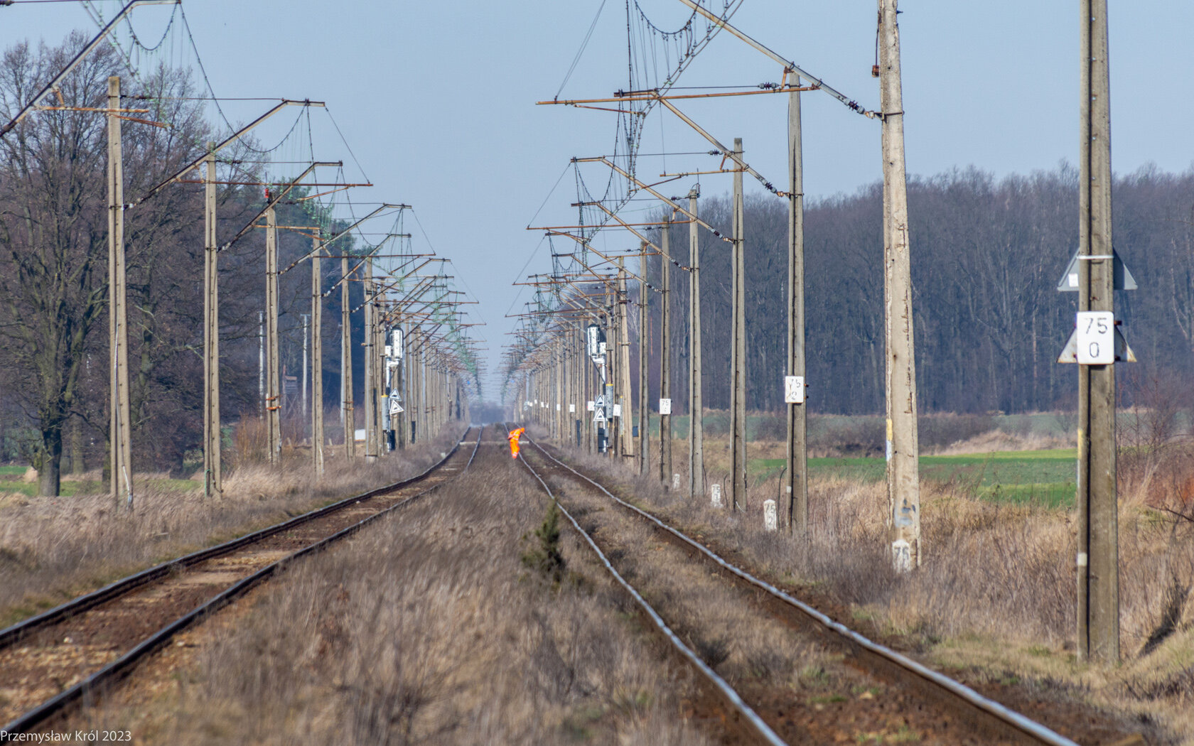 Widok w stronę Oleśnicy, obchodowy robi inspekcję szlaku.