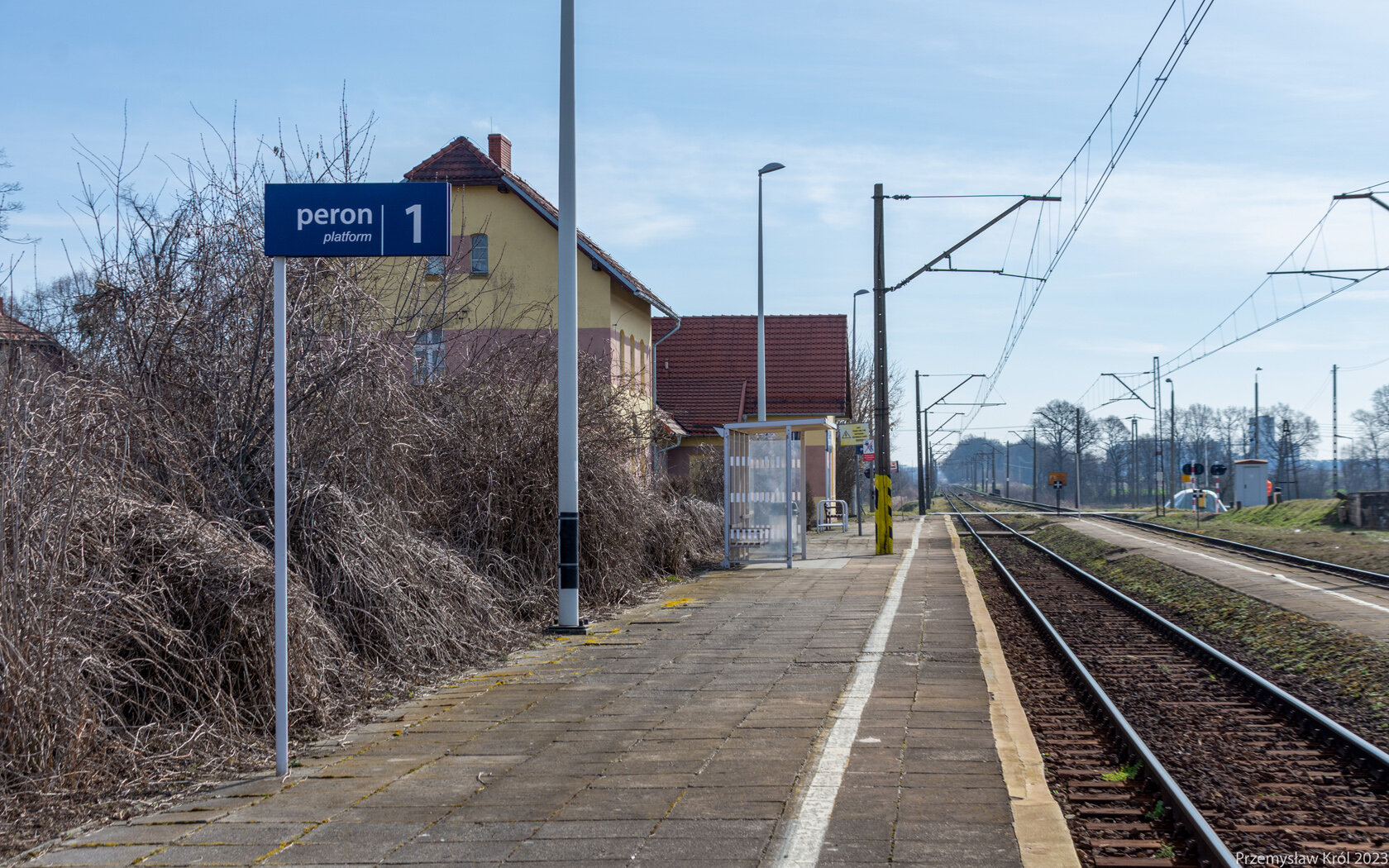 Zachodni koniec peronu, widok w stronę Oleśnicy.