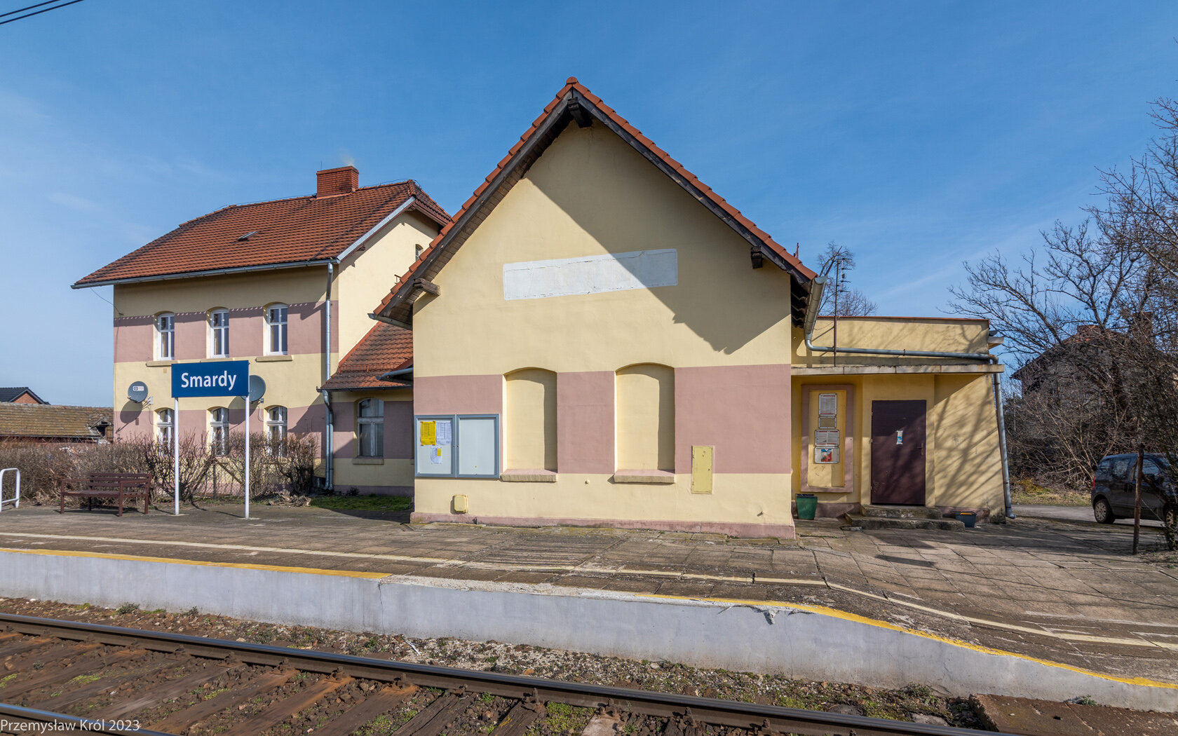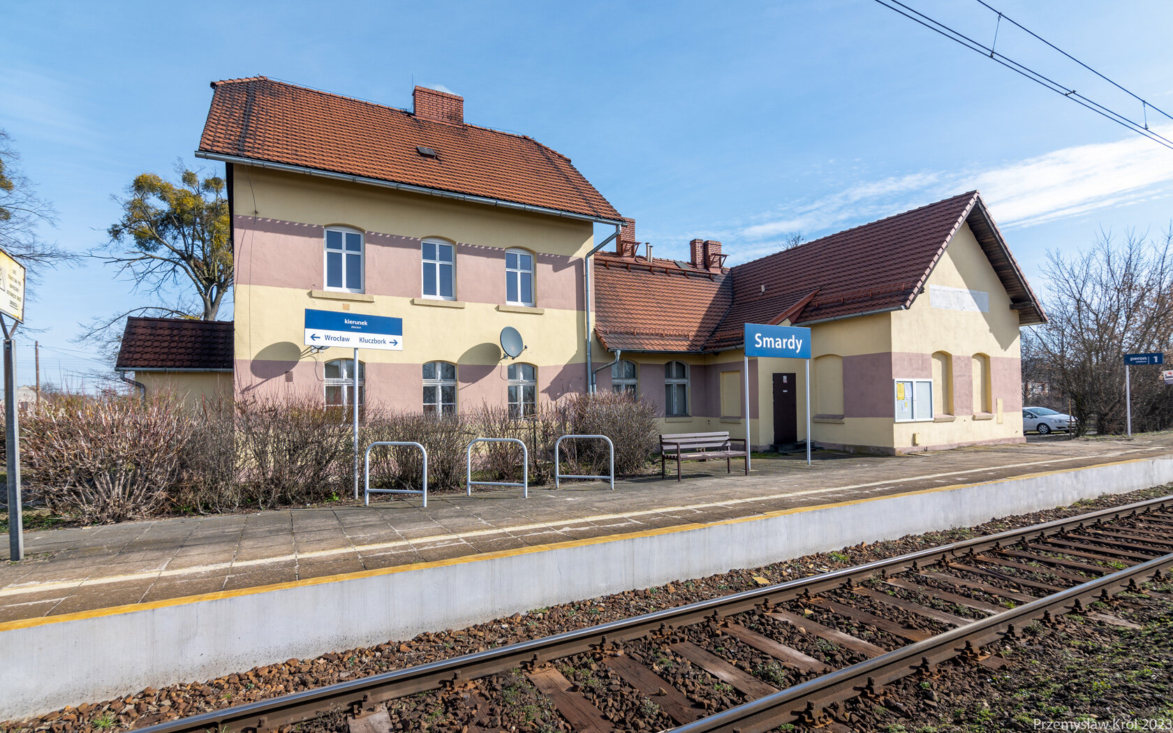 Dawny budynek kolejowy jak widać jest opuszczony i nie używany przez kolej.