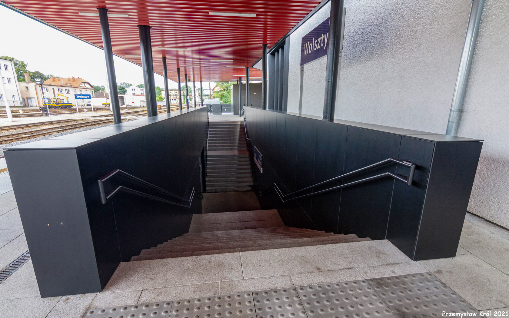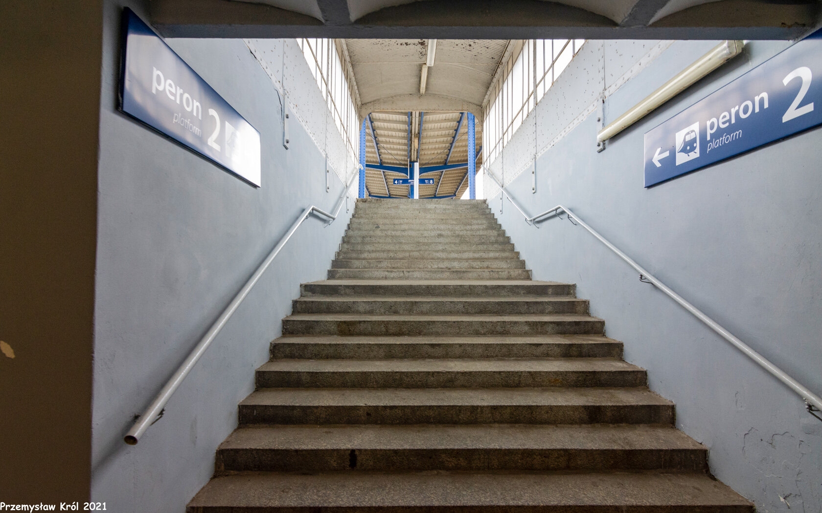 Zmodernizowane zejście do podziemnego przejścia pod torami z peronu numer 1.
