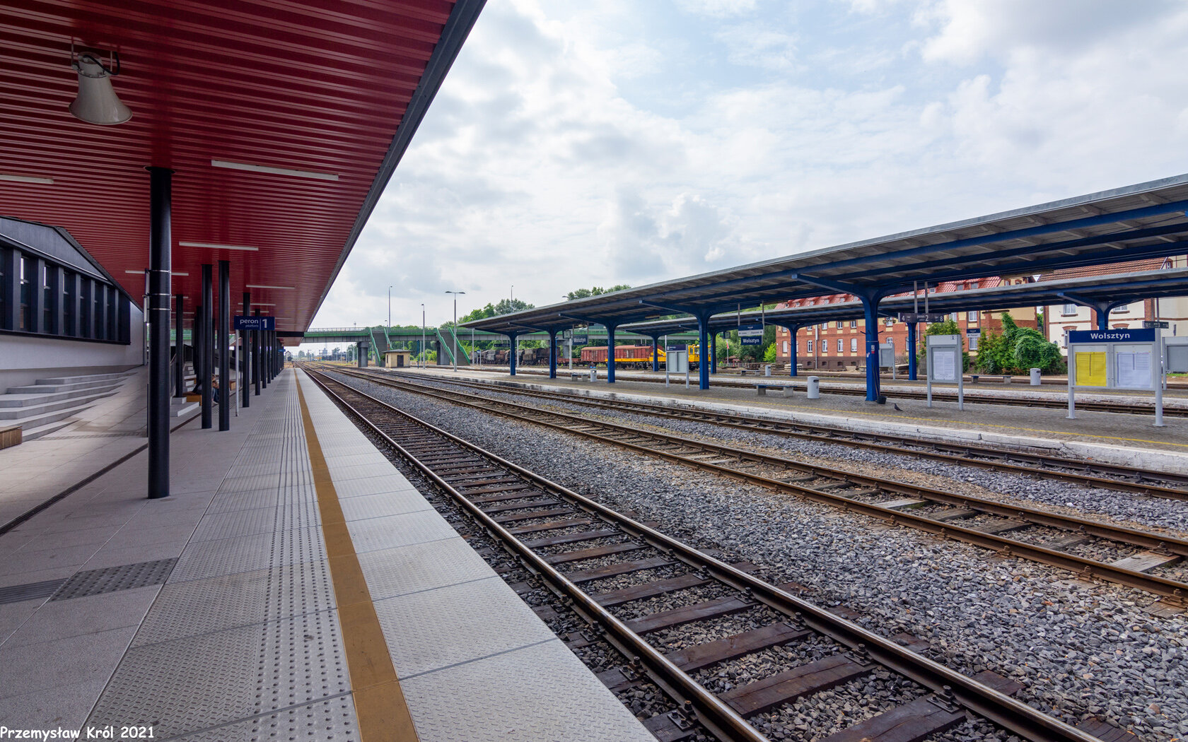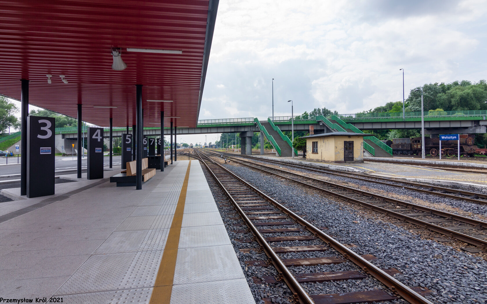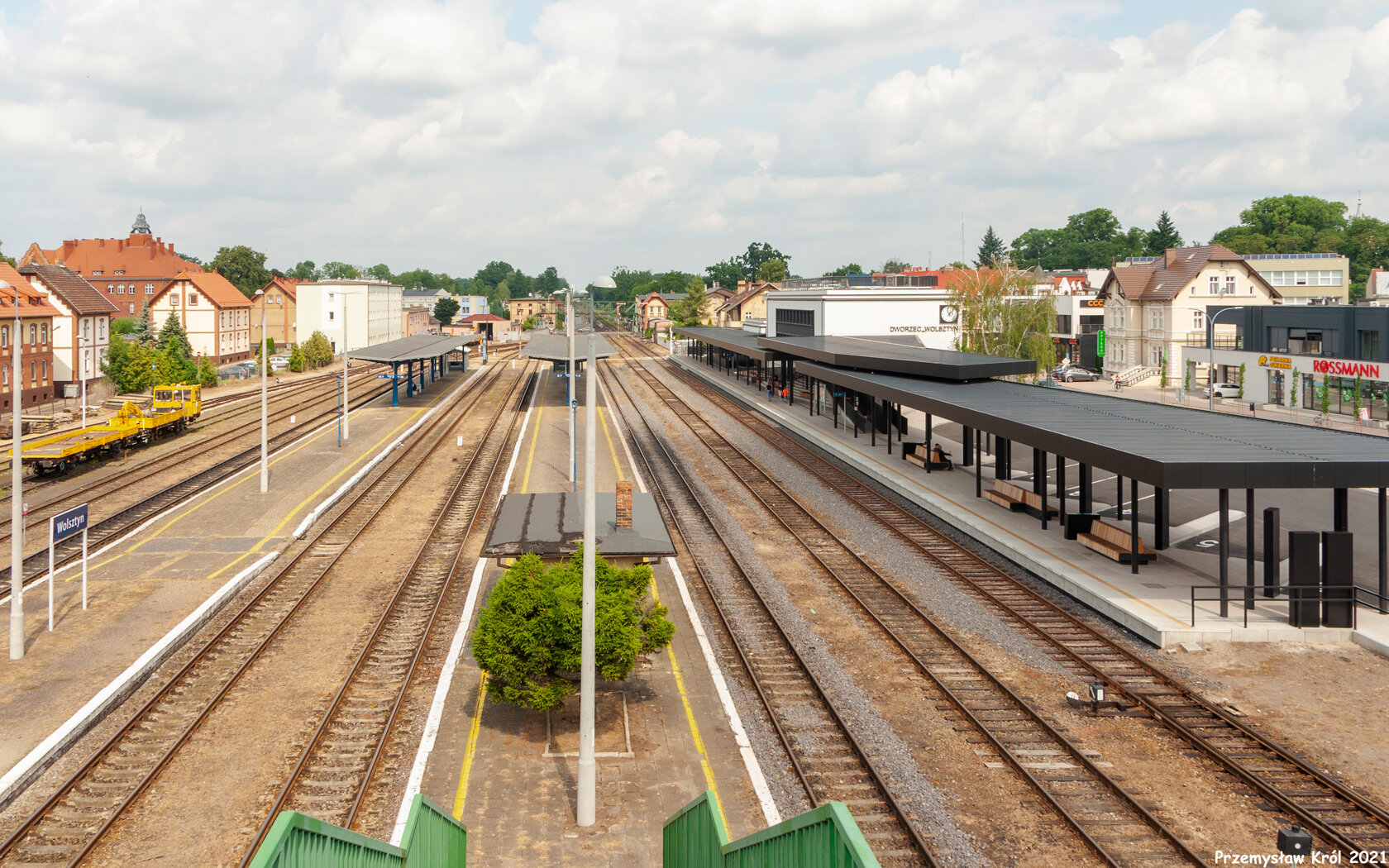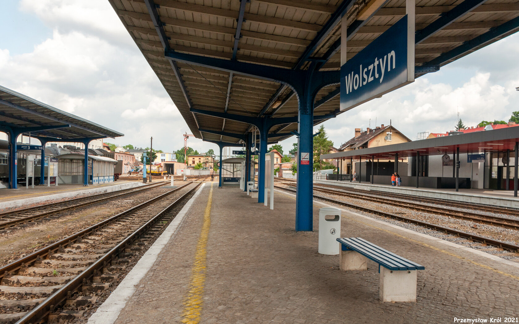 Widok na perony 2 i 3 od zachodniej części stacji Wolsztyn.