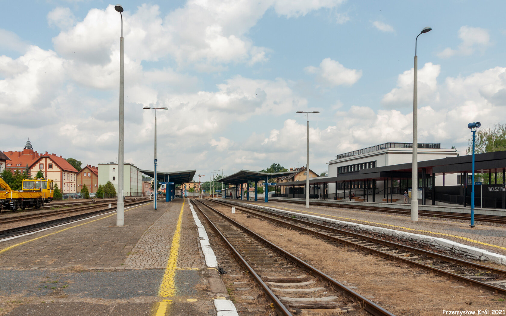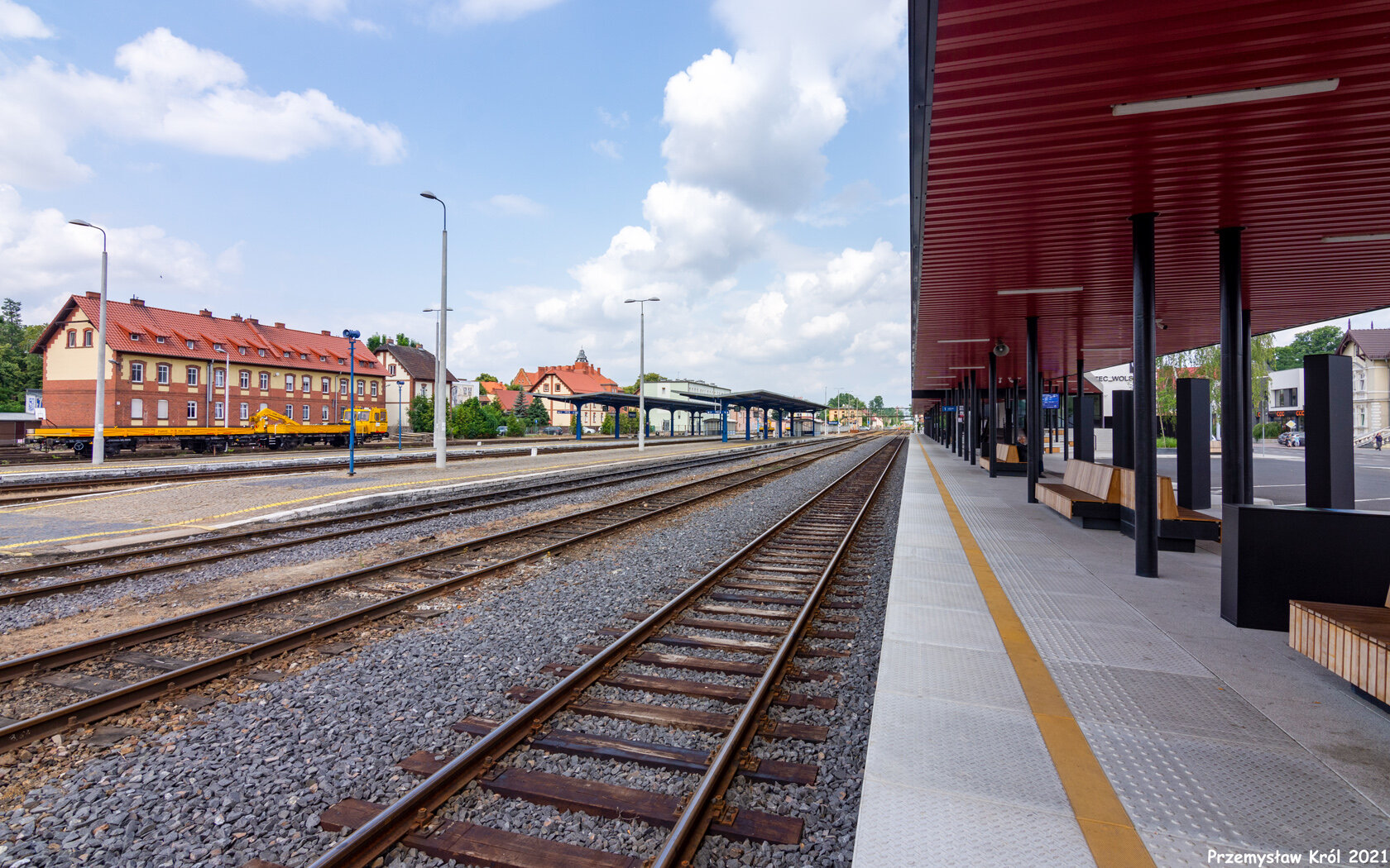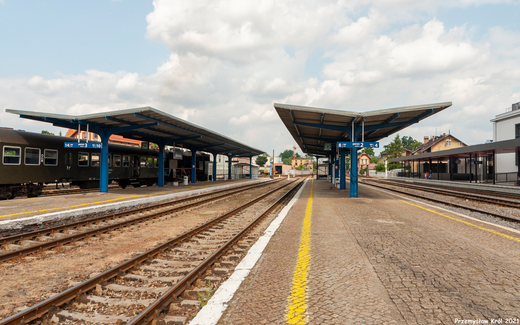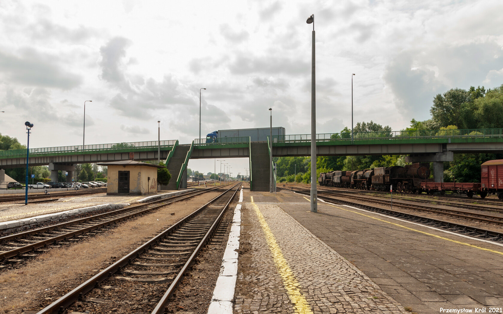 Widok na perony 2 i 3 od zachodniej części stacji Wolsztyn.