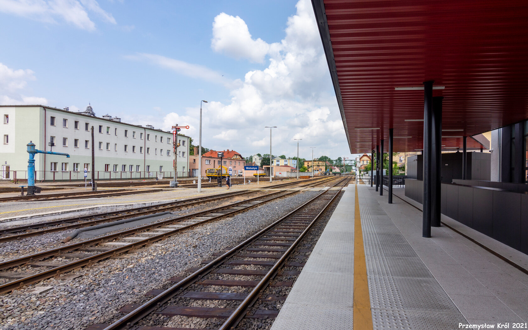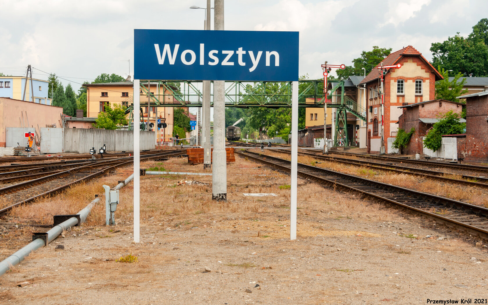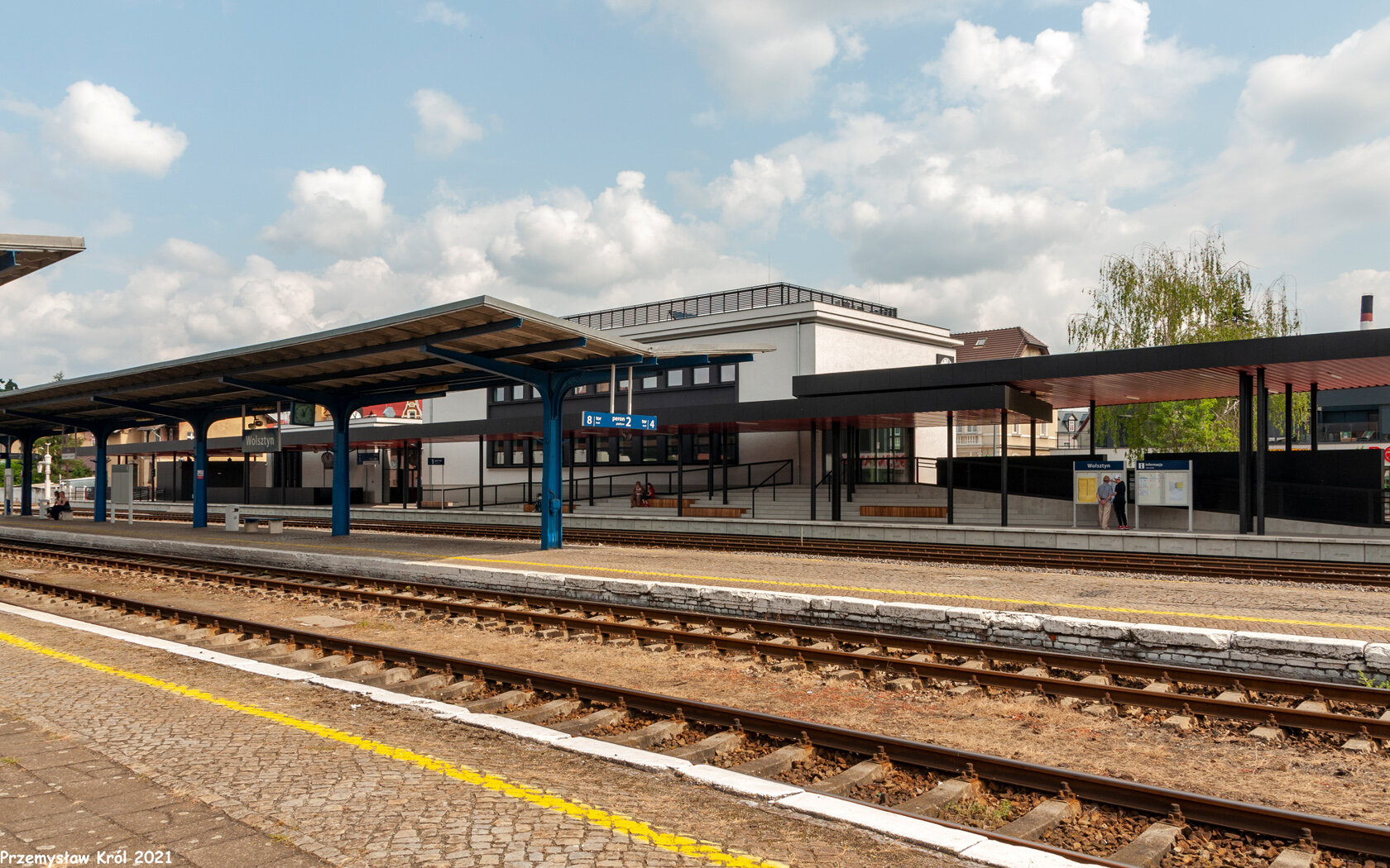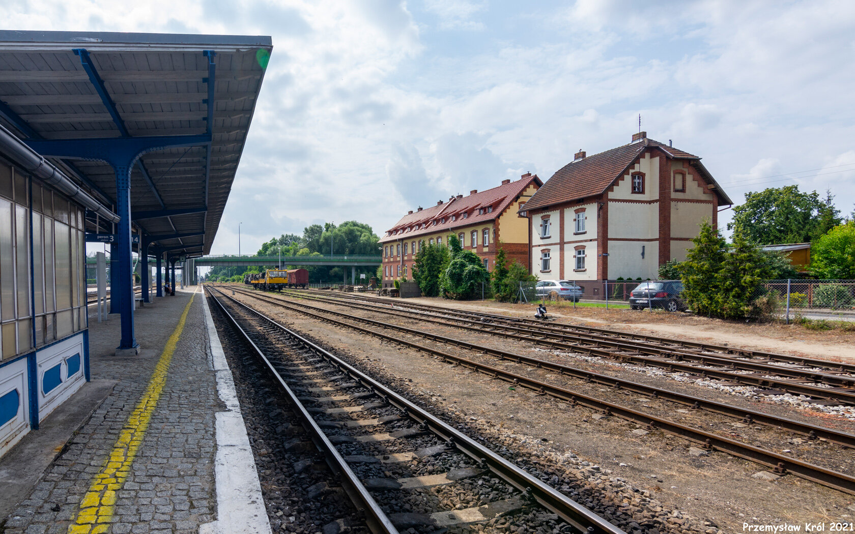 Widok na perony 2 i 3 od zachodniej części stacji Wolsztyn.