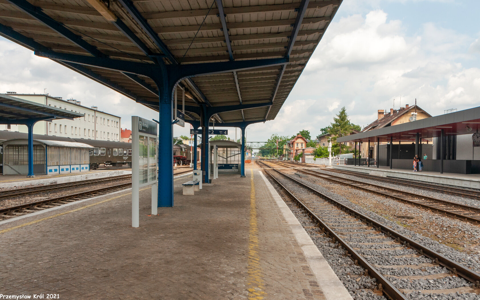 Widok na peron pierwszy w kierunku wschodnim na wysokości dworca.