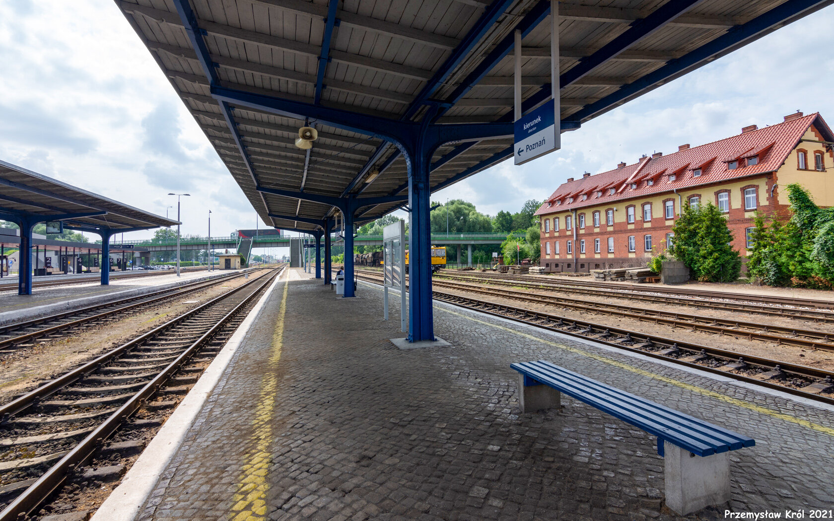 Peron pierwszy stacji z tej platformy odjeżdżają głównie pociągi w stronę Zbąszynka i Leszna.