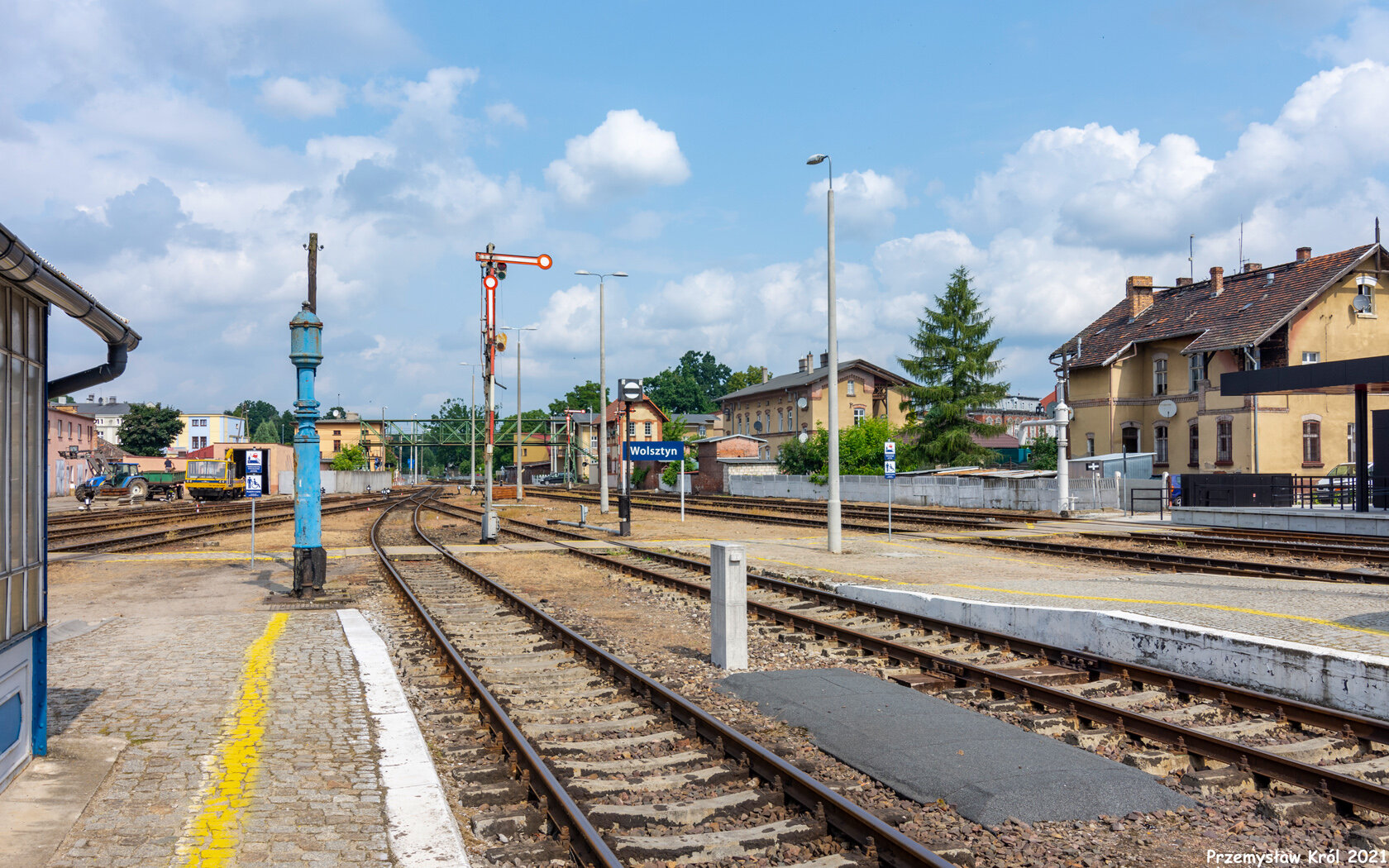 Wschodnia strona stacji Wolsztyn i nastawnia WL, ujęcie z terenu Wolsztyńskiej Parowozowni.