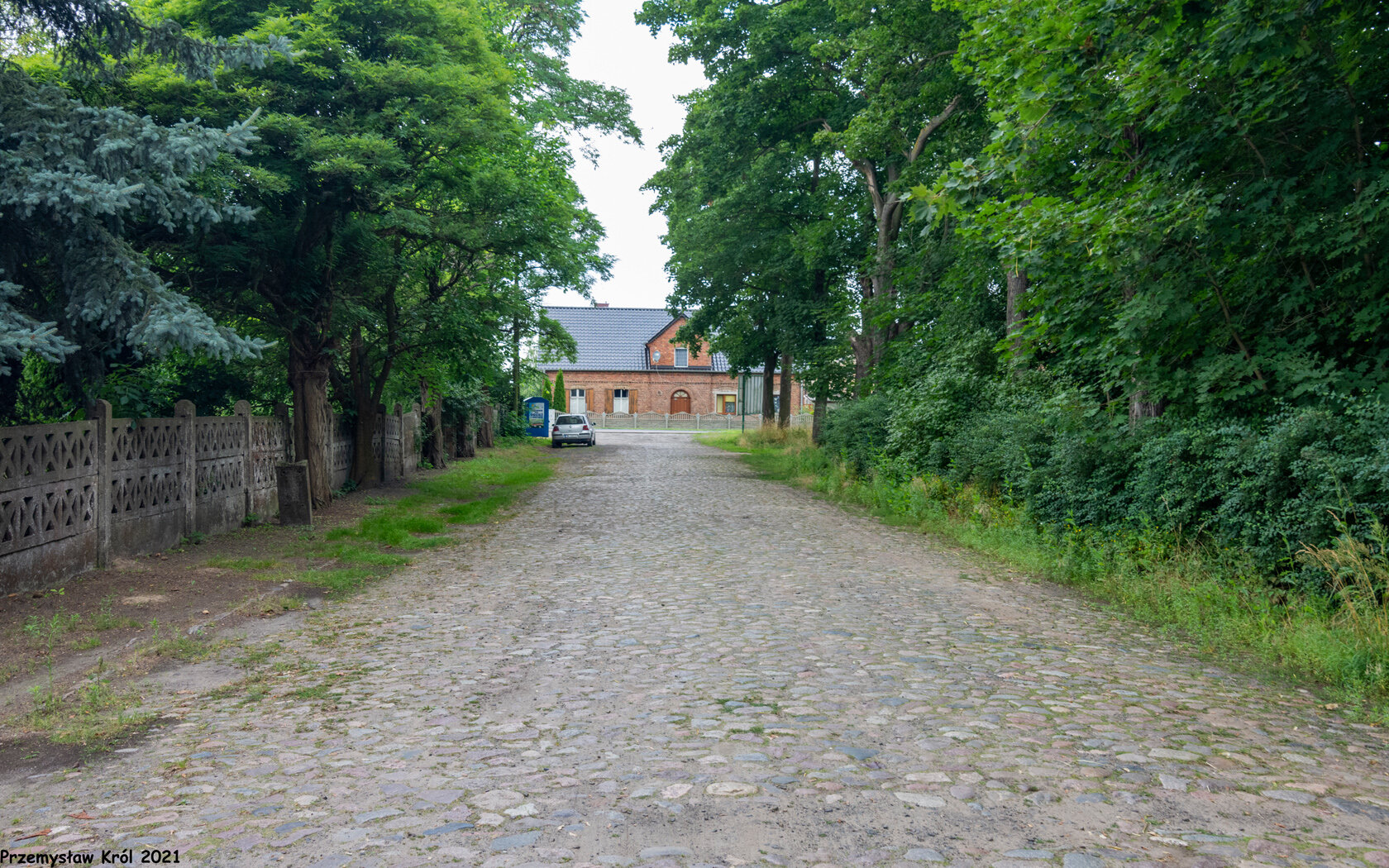 Droga dojazdowa do stacji, szeroka ale brukowana.