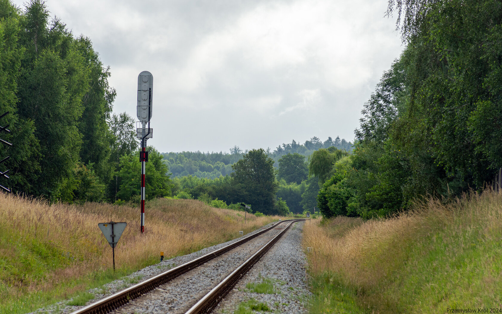 Widok na zlikwidowany semafor wjazdowy do stacji Szydłów.