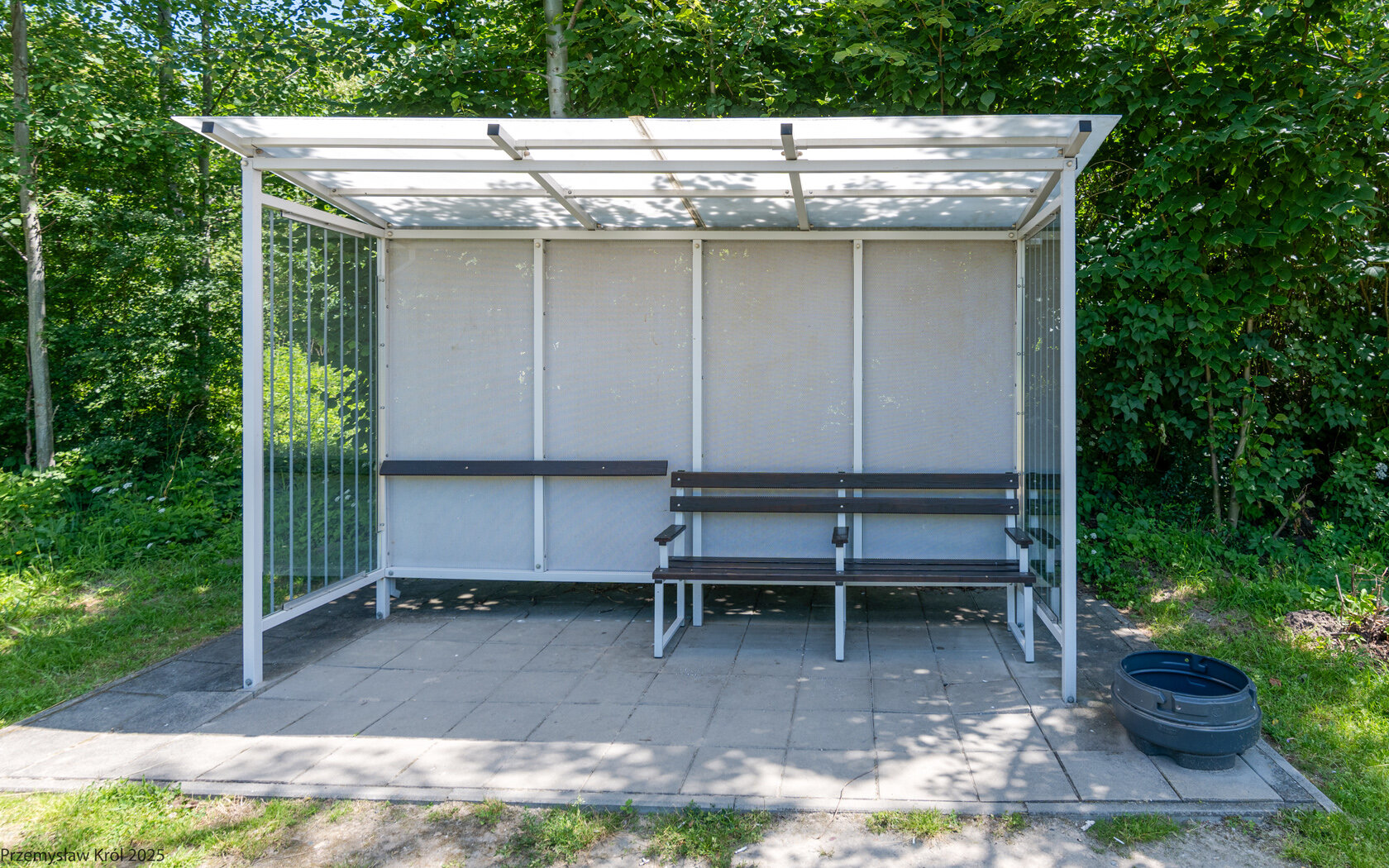 W zagłębieniu zarządca postawił wiatę dla podróżnych.