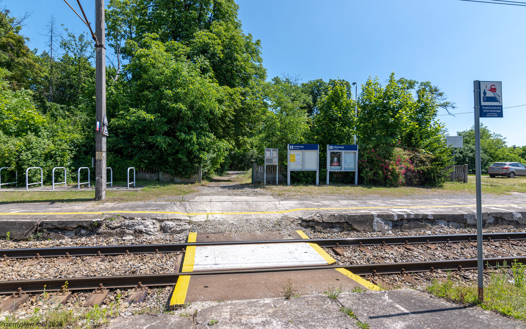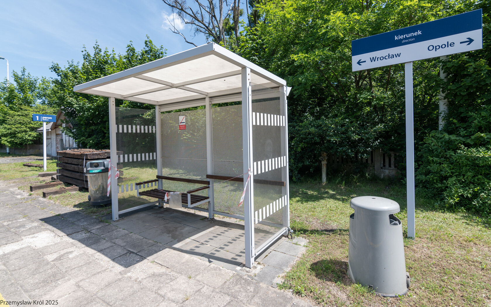 Tablica kierunkowa oraz mała wiata dla pasażerów. Mało pasażerów = mało pociągów, patrz rozkład jazdy.