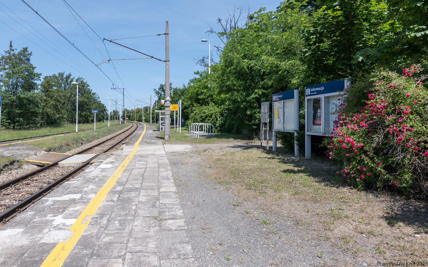 Peron pierwszy ciągnie się jeszcze jakieś 10-15 metrów, choć wskaźnik W4 wskazujący gdzie powinno zatrzymać czoło pociągu jest umieszczony nieco wcześniej niż właściwy koniec platformy.