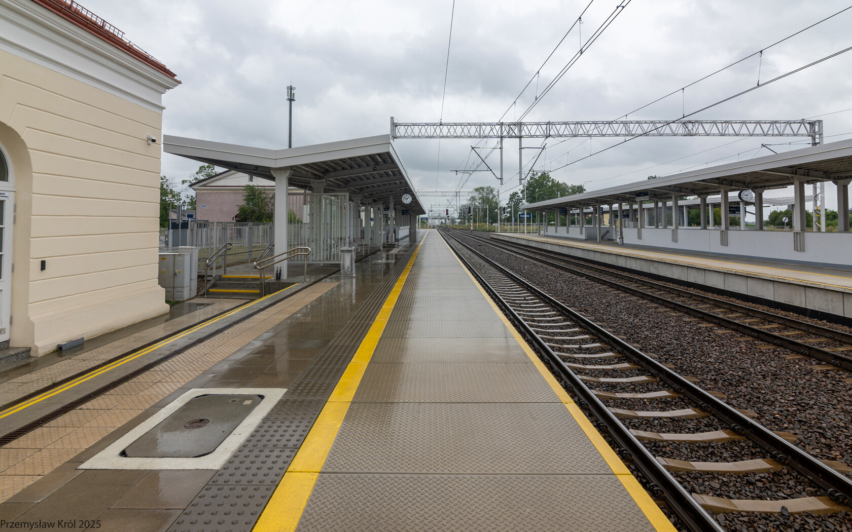 Kadr z pierwszego peronu w stronę wschodnią, zdjęcia były wykonywane przeze mnie bardzo szybko z uwagi na opady deszczu.