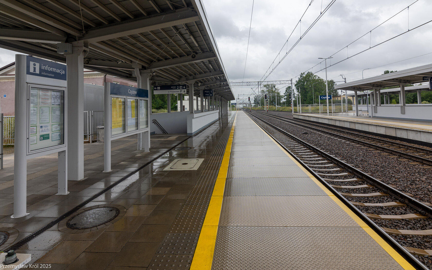 Peron drugi i tor numer 2, tym torem jeżdżą pociągi w kierunku Warszawy.
