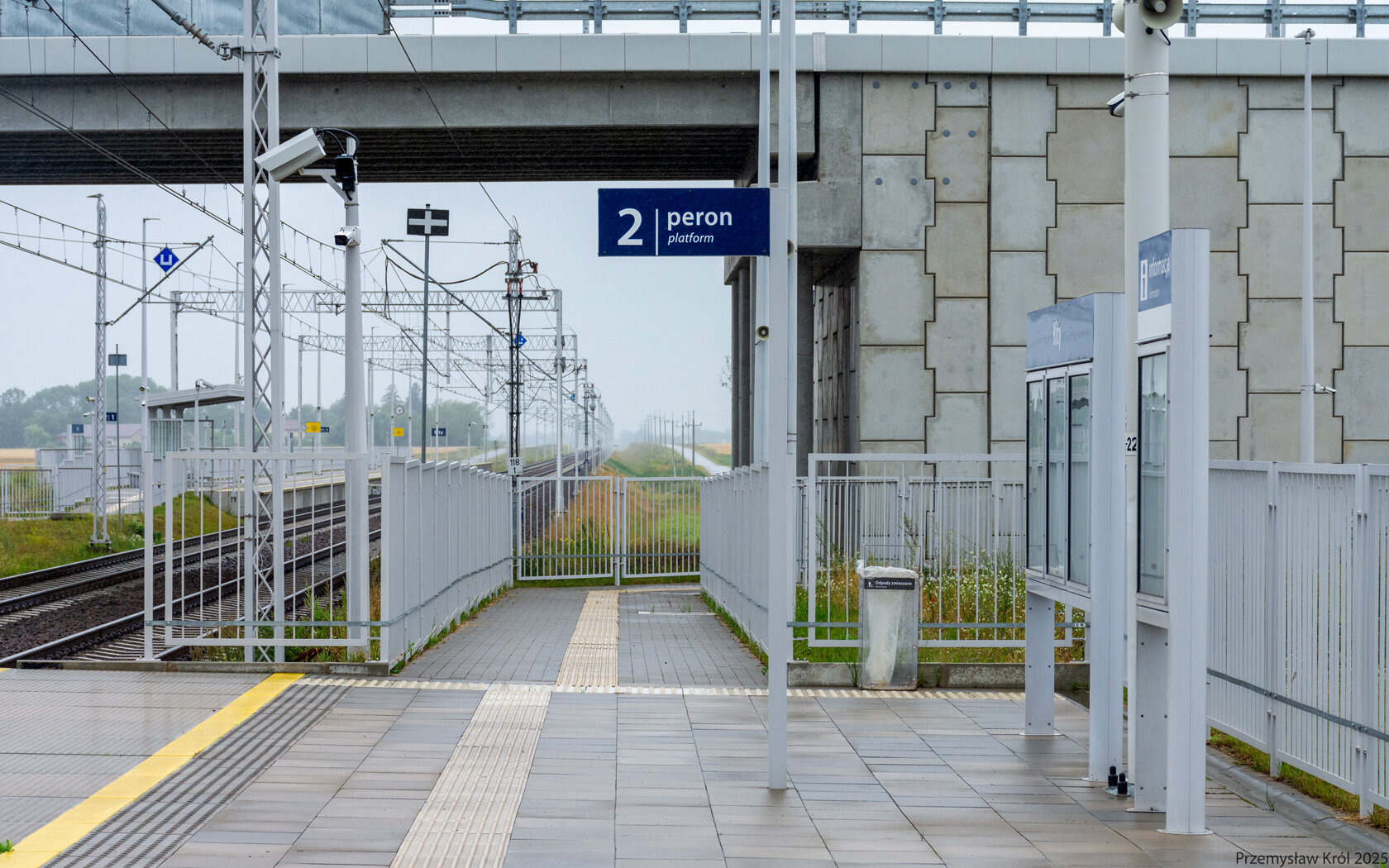 Peron drugi jest szeroki długi ale "pusty" w sensie pozbawiony elementów małej architektury dla pasażerów.