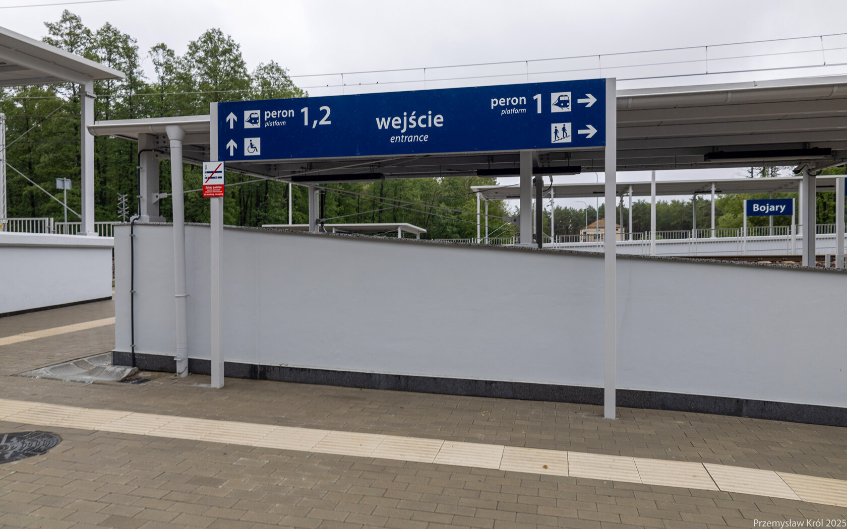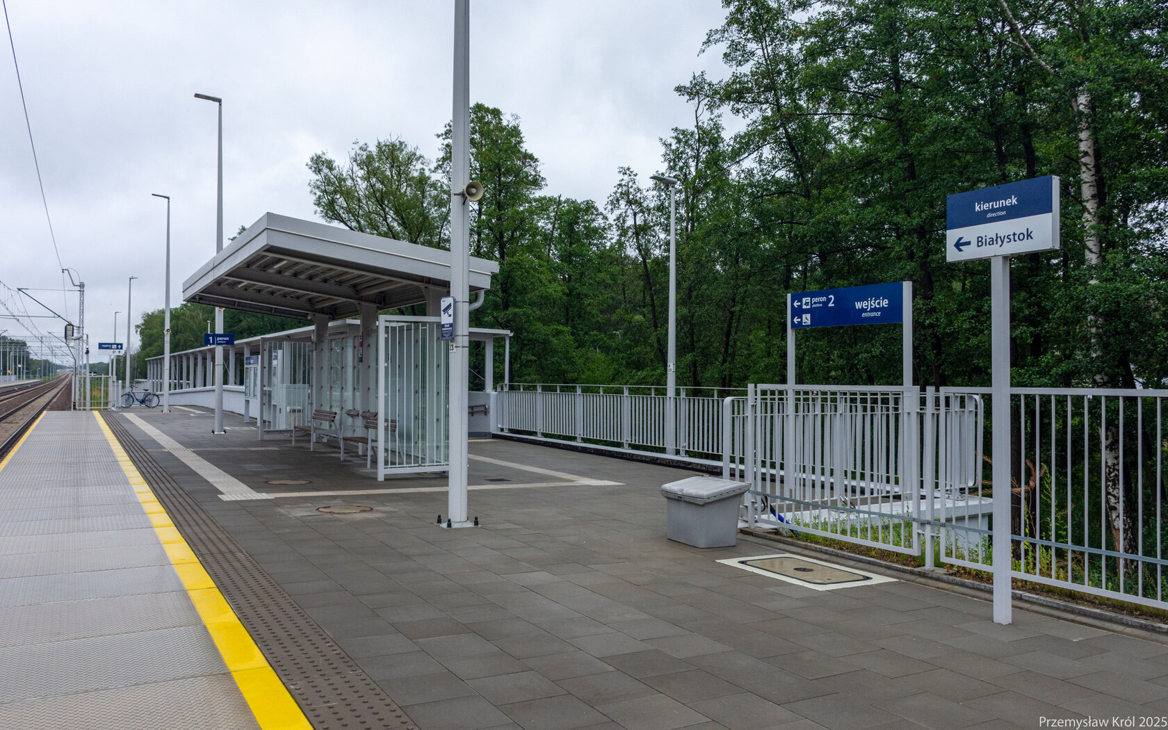 Przejście pod torami umożliwia dojście do drugiego peronu. Z drugiego peronu można pojechać w stronę Łap.