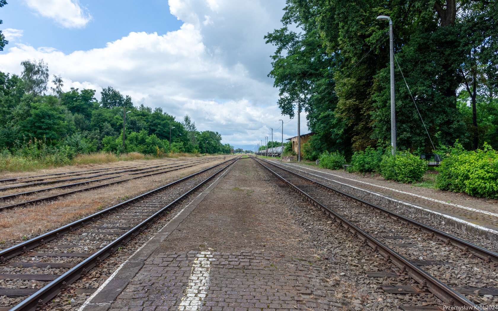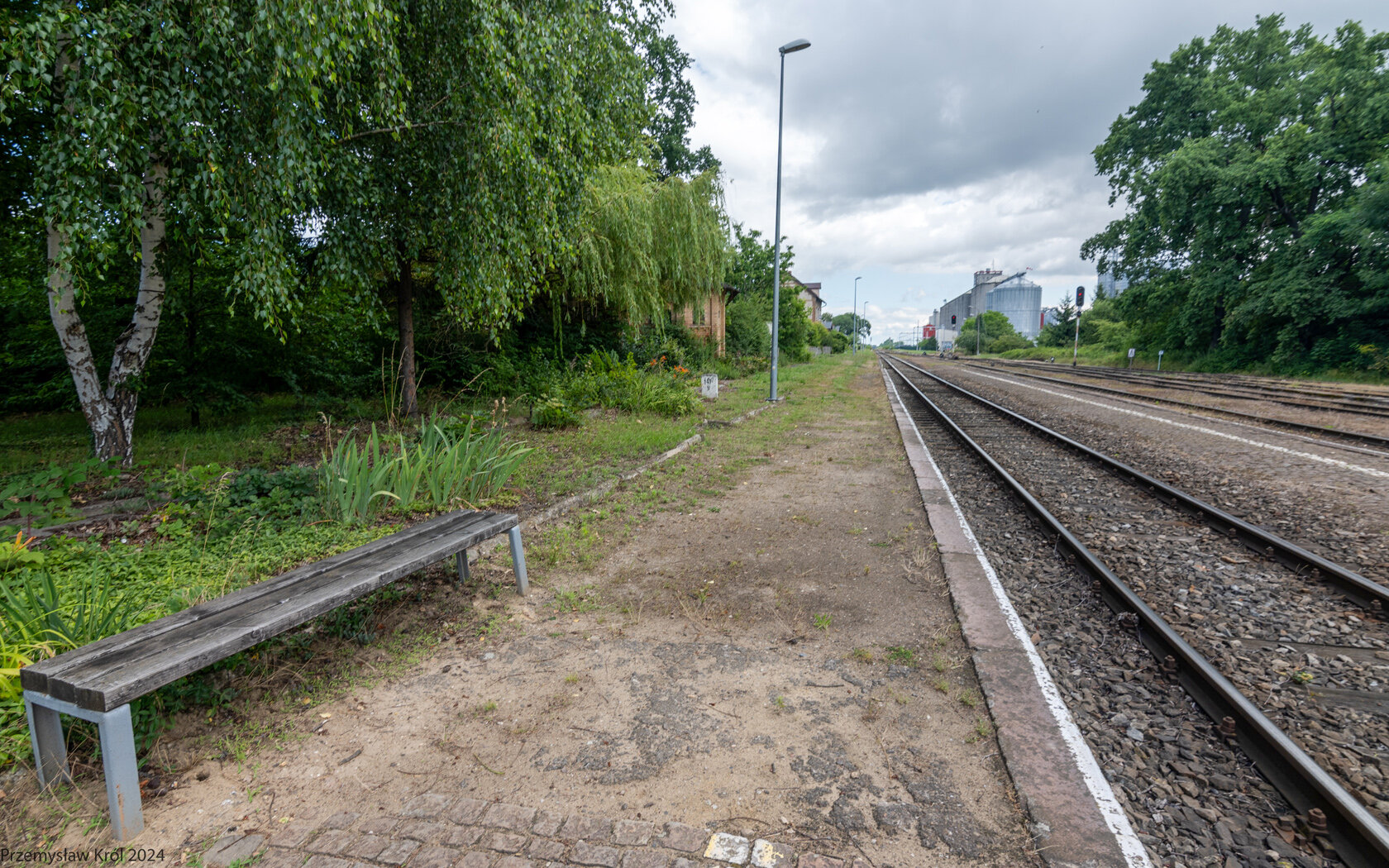 Perony są niskie brukowane z kostki, peron pierwszy jest dość szeroki, na drugim przydałoby się jakieś zabezpieczenie od toru gdzie nie ma krawędzi.