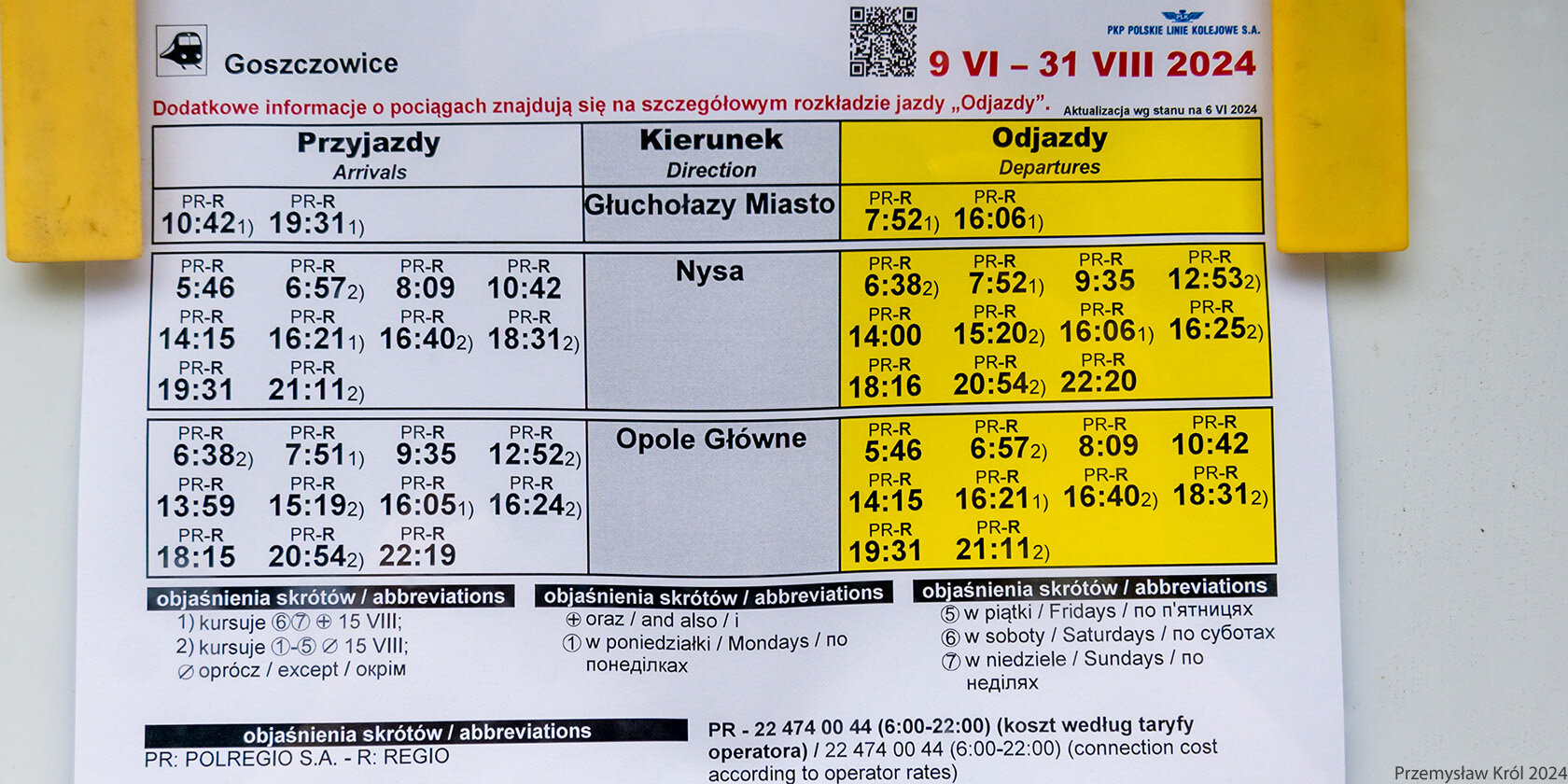 Rozkład jazdy pociągów kursujących na wyremontowanej linii łączącej Nysę z Opolem.
