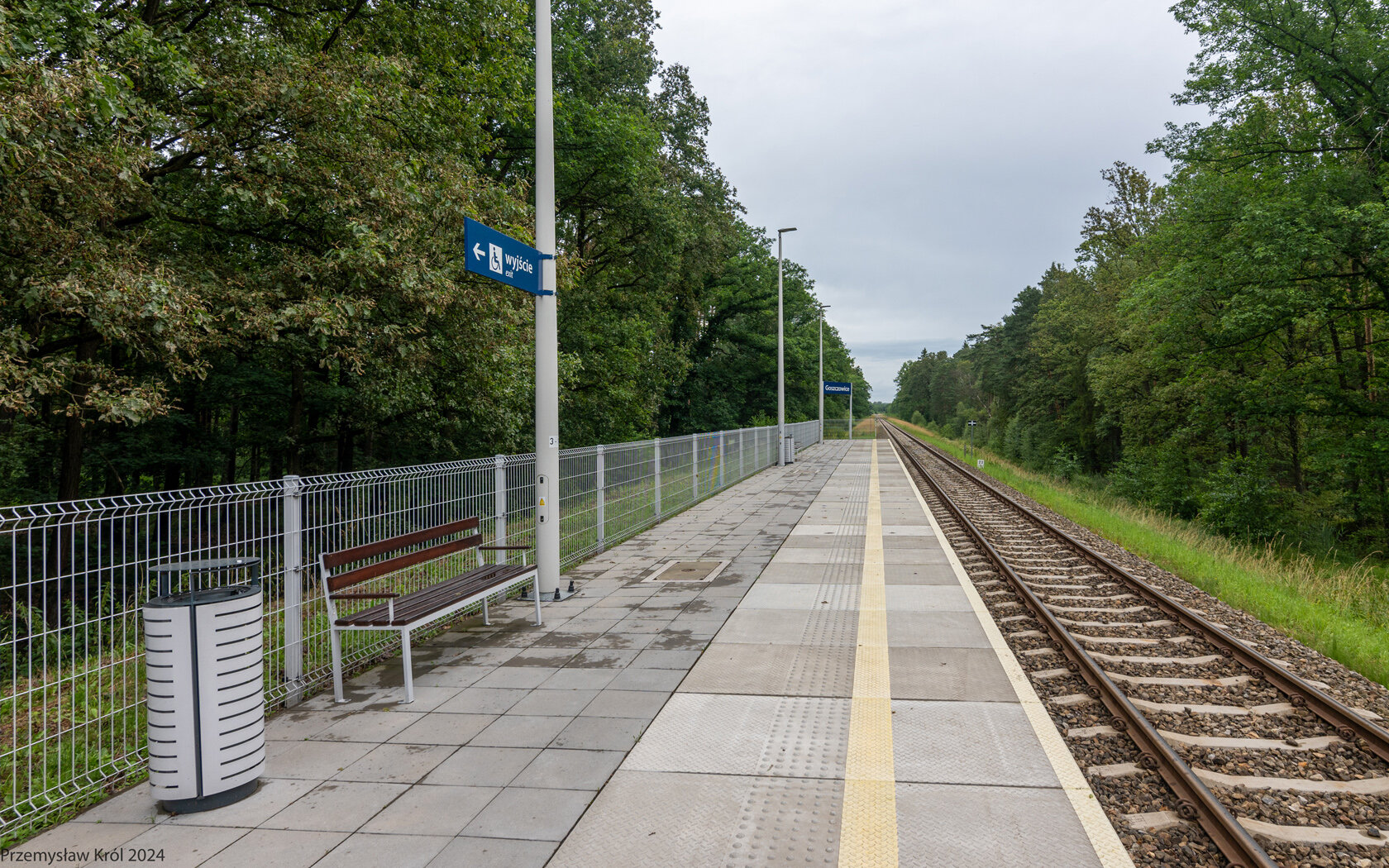 Drugi peron jest dość wąski i nie ma tu miejsca na elementy typu ławka, wiata czy kosze nie wspominając o gablotach z rozkładem jazdy.